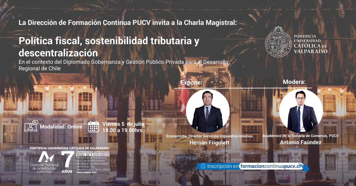 Dirección de Formación Continua PUCV, en el contexto del quinto módulo del Diplomado de Gobernanza y Gestión Público Privada para el Desarrollo Regional de Chile, invita a esta charla magistral dictada por el experto Hernán Frigolett