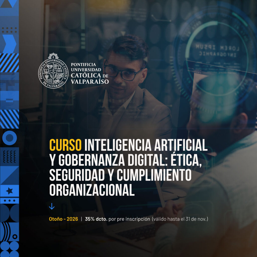 El Curso Inteligencia Artificial y Gobernanza Digital: Ética, Seguridad y Cumplimiento Organizacional está diseñado para fortalecer las competencias técnicas y normativas de los profesionales que enfrentan los desafíos de integrar la inteligencia artificial en procesos organizacionales de manera ética, segura y conforme a marcos regulatorios actualizados. La Pontificia Universidad Católica de Valparaíso, a través de Formación Continua PUCV, presenta este programa como respuesta a la creciente necesidad de abordar temas emergentes como el cumplimiento normativo digital, la ciberseguridad y la protección de datos personales en entornos automatizados.