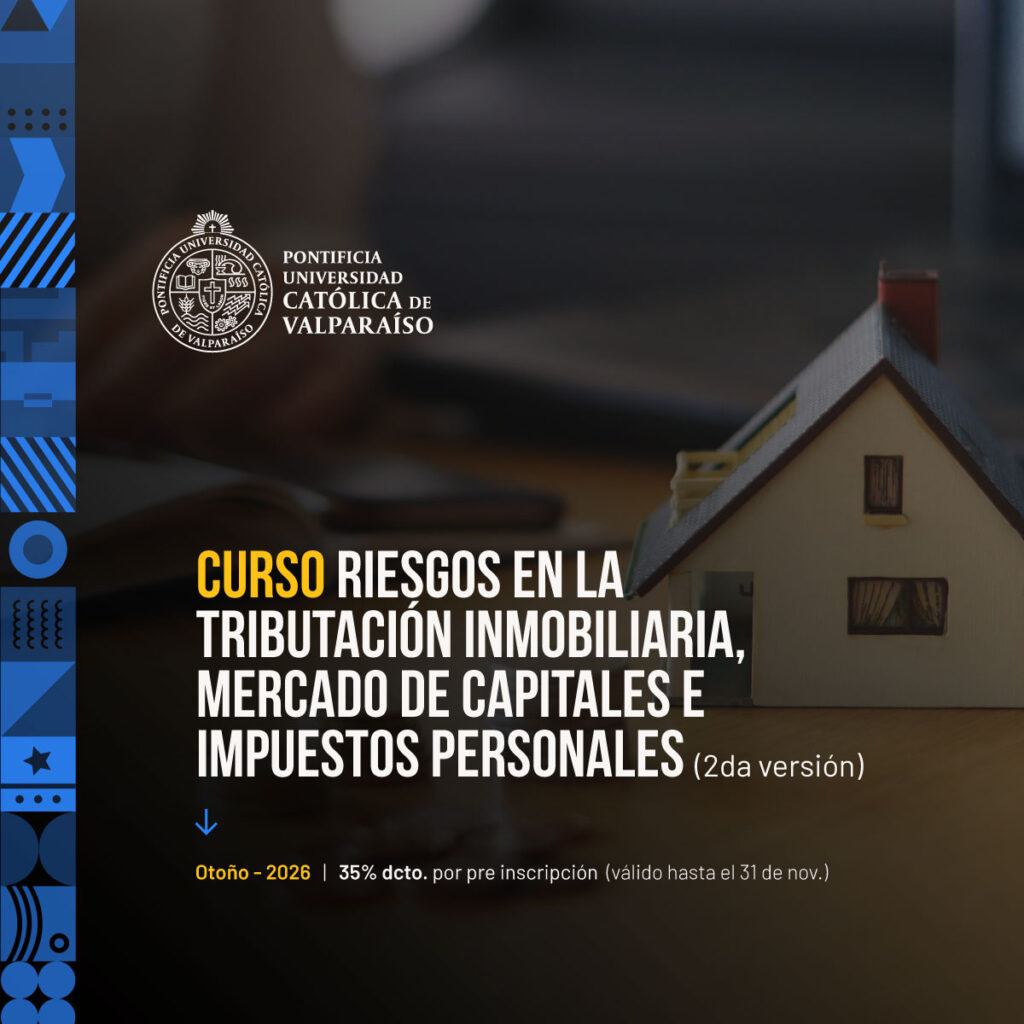 El Curso Riesgos en la Tributación Inmobiliaria, Mercado de Capitales e Impuestos Personales es una propuesta de especialización que busca entregar herramientas clave para identificar, mitigar y controlar riesgos tributarios en distintos escenarios empresariales, con énfasis en el sector inmobiliario, los mercados de capitales y los impuestos personales. Esta iniciativa forma parte de la oferta de Formación Continua PUCV y responde a la necesidad de contar con profesionales capacitados en gestión fiscal dentro de marcos de cumplimiento organizacional.