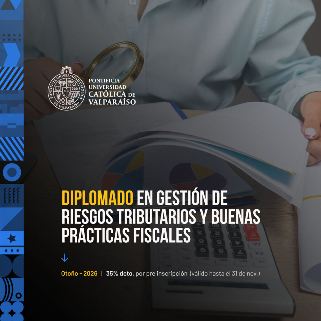 El Diplomado en Gestión de Riesgos Tributarios y Buenas Prácticas Fiscales tiene como objetivo principal capacitar a profesionales en el diseño e implementación de modelos de gestión que permitan identificar, mitigar y controlar riesgos tributarios, considerando los actuales estándares de buenas prácticas fiscales y los principios de sostenibilidad tributaria. Esta propuesta formativa se enmarca en los lineamientos estratégicos de la Pontificia Universidad Católica de Valparaíso y responde a una necesidad institucional por fortalecer el cumplimiento normativo y la transparencia en organizaciones públicas y privadas.