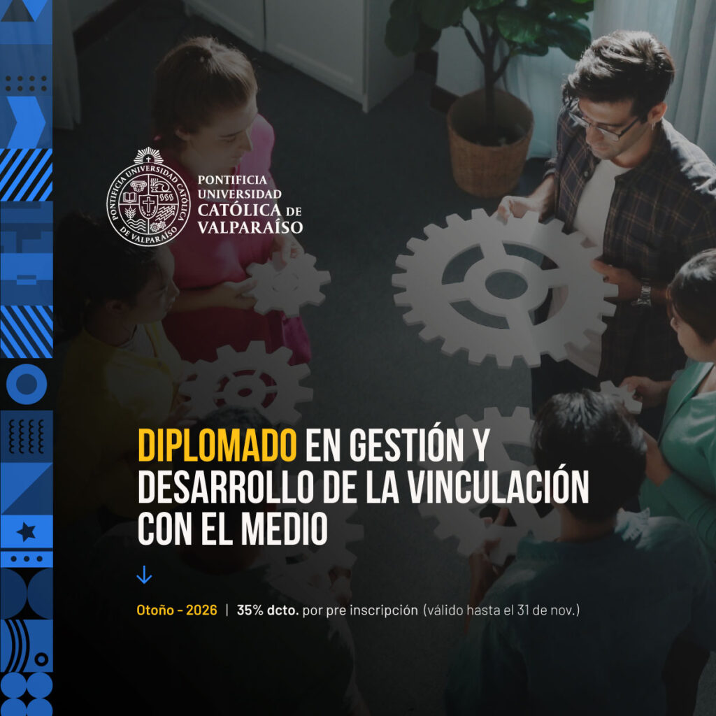 El Diplomado en Gestión y Desarrollo de la Vinculación con el Medio es una instancia formativa diseñada para fortalecer las capacidades institucionales en el diseño, implementación, evaluación y mejora de procesos de vinculación con el entorno. Esta propuesta de la Pontificia Universidad Católica de Valparaíso se alinea con las políticas de aseguramiento de la calidad y desarrollo territorial, promoviendo una vinculación estratégica, pertinente y sostenible.