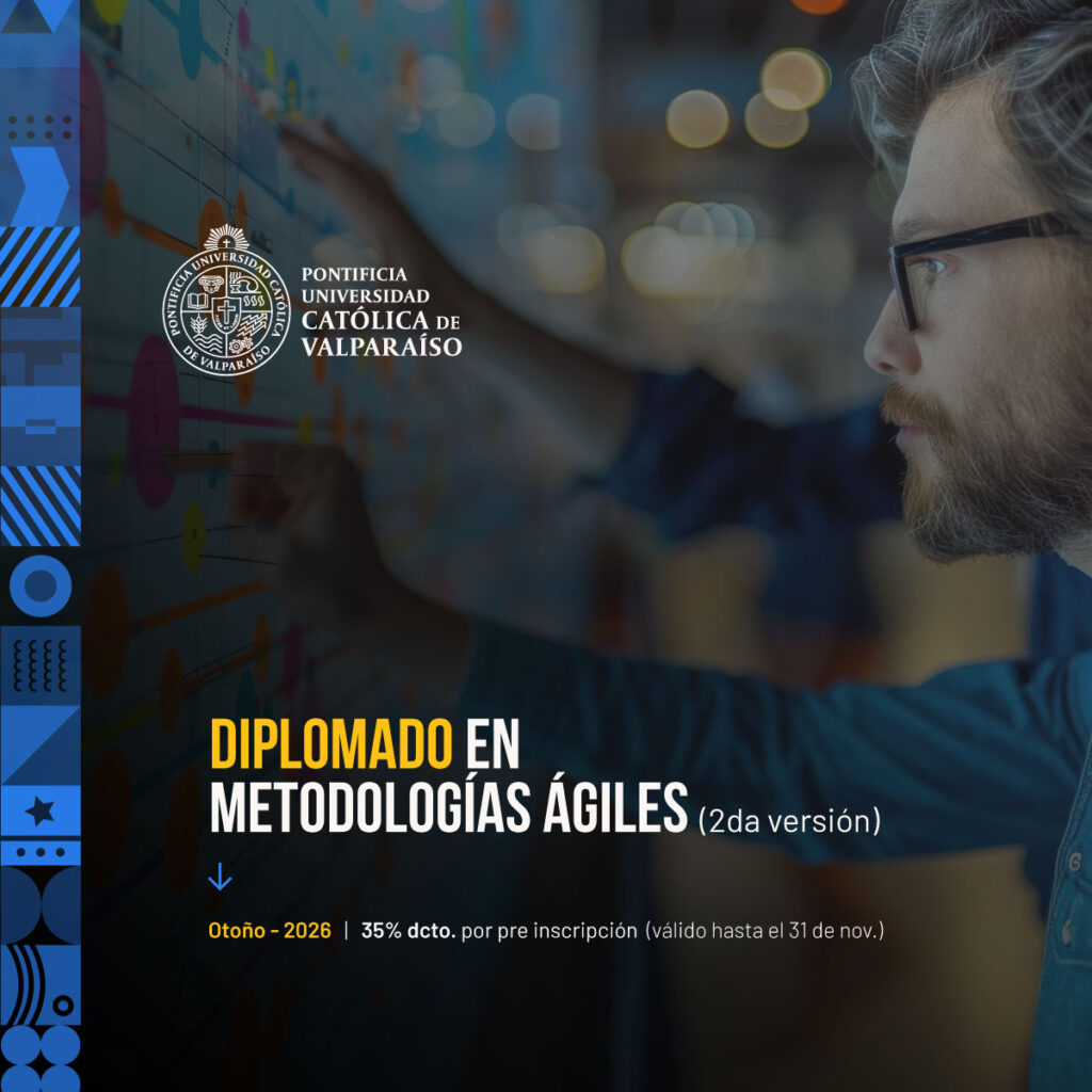 Con una duración de 90 horas repartidas en un período de 3 meses, el diplomado es 100% online, con clases semanales en vivo a través de la plataforma Zoom y material de apoyo en el Aula Virtual de Formación Continua PUCV. Los contenidos principales incluyen la historia y principios de la agilidad, SCRUM y Kanban. Al finalizar, los participantes podrán liderar y facilitar procesos ágiles aplicando estas herramientas y utilizando métricas de rendimiento para optimizar proyectos.